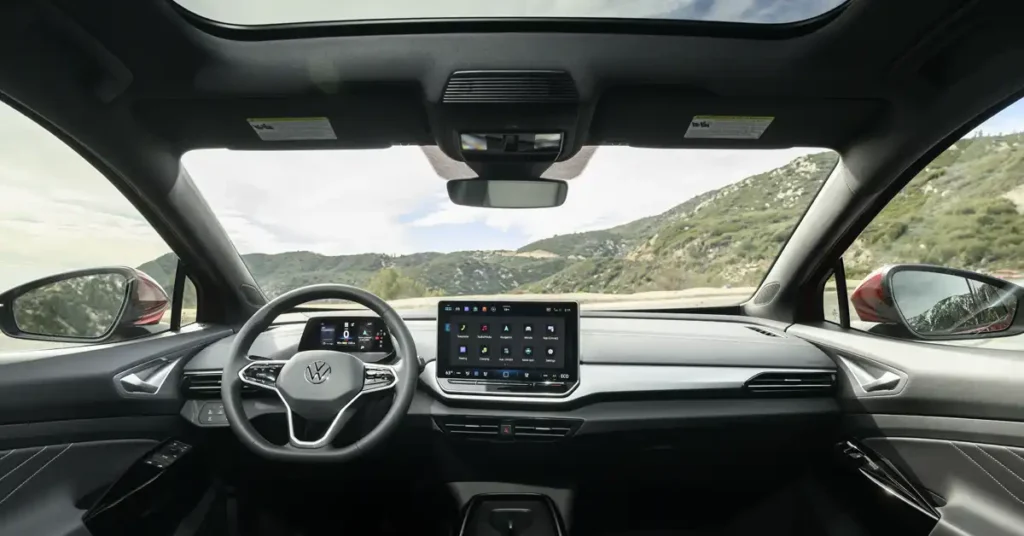 Step inside the ID.4 and the cabin immediately feels open and relaxed. The flat floor, long wheelbase, and minimal dashboard create a sense of space that belies the SUV’s compact exterior dimensions.